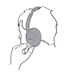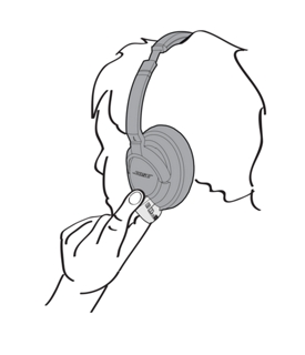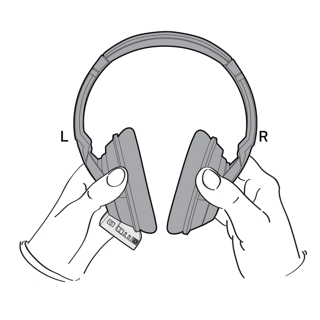 Tragen Sie die Kopfhörer mit der linken Ohrmuschel (L) und dem Steuermodul über dem linken Ohr.
